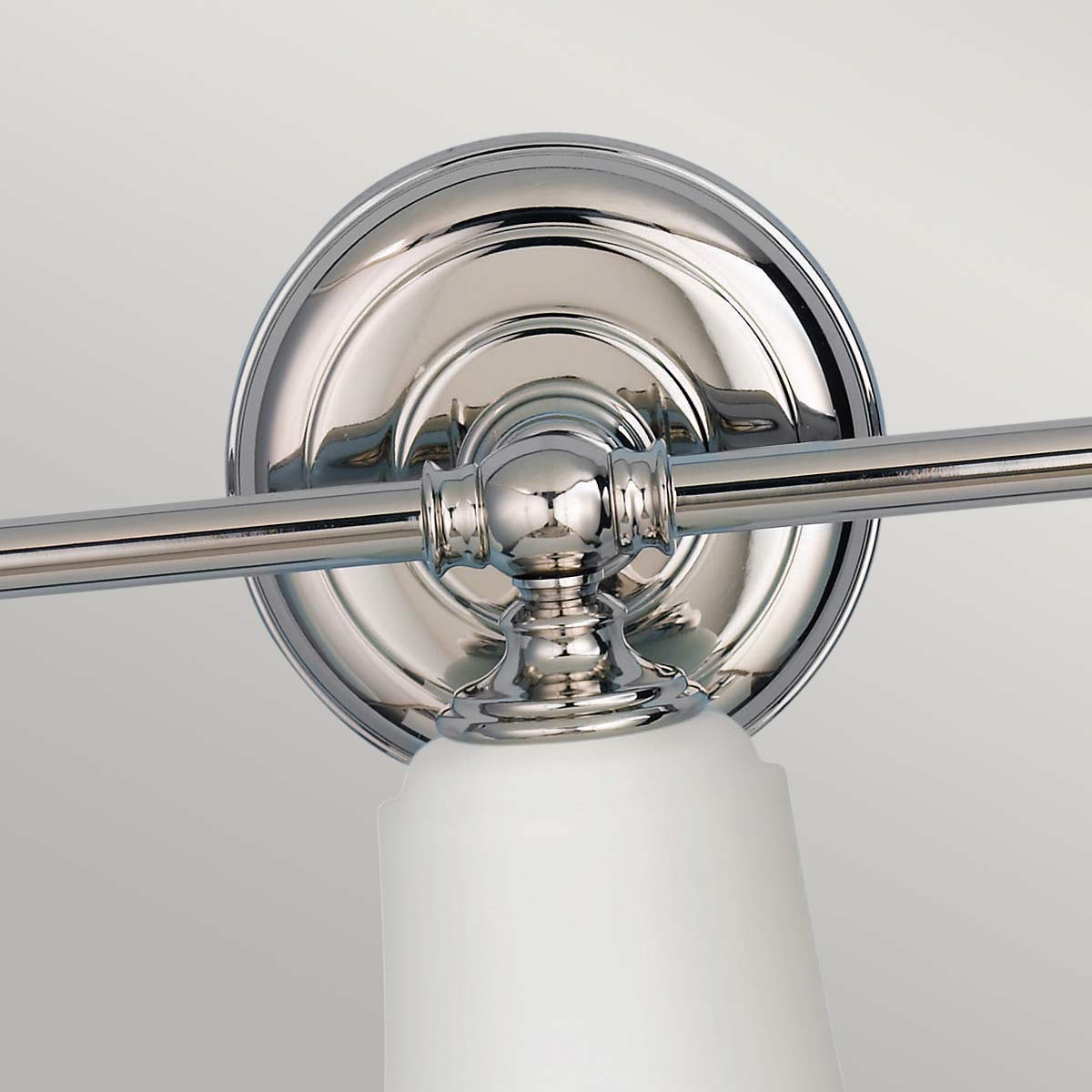 Бра Feiss FE-HUGOLAKE3BATH из коллекции Huguenot Lake. Яркая деталь светильника, узор на розетке, напоминающий круги отброшенного в озеро камня. Впечатление усиливается благодаря отделке «хром», действительно похожей на серебристо-зеркальную водную гладь. Простота и изящество плафонов изготовленных из матово-белого стекла и акцентированном небольшим металлическим шаром. Лаконичный и выверенный дизайн притягивает взгляд. Простота стиля компенсируется красотой молочно-белого непрозрачного стекла с чуть выпуклыми гранями. Можно использовать при освещении ванной комнаты, степень защиты IP44.