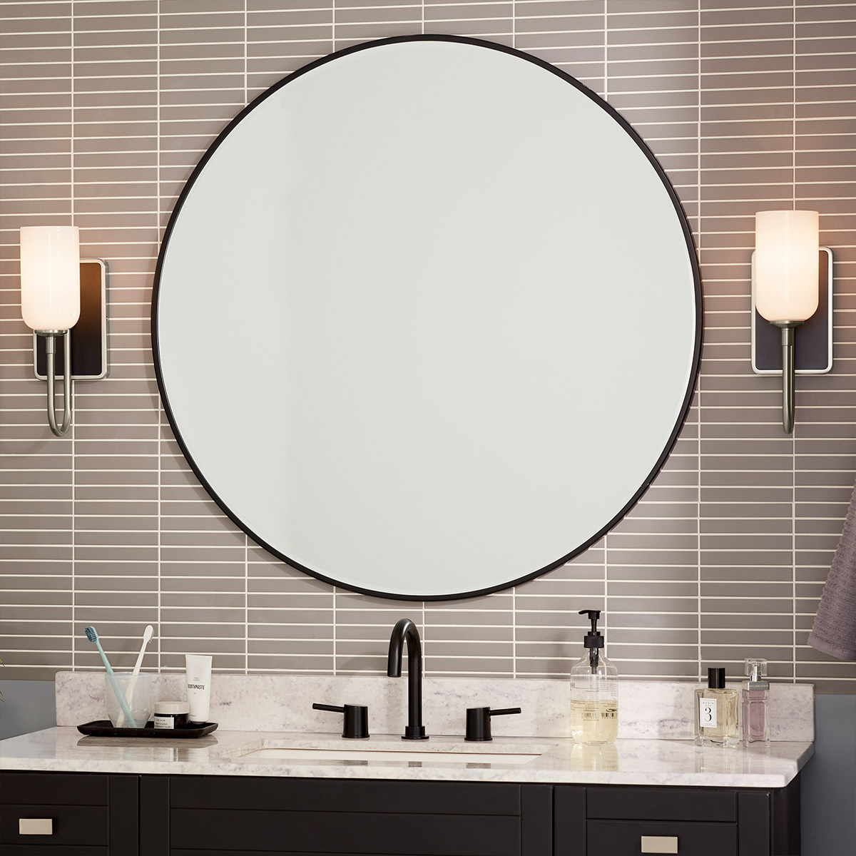Бра для ванных комнат Kichler KL-SOLIA-1W-BNB из коллекции SOLIA. Основание выполнено в шлифованной никель и черной отделке. Эта модель имеет влагозащиту уровня IP44. Рекомендуем для интерьеров в современном стиле