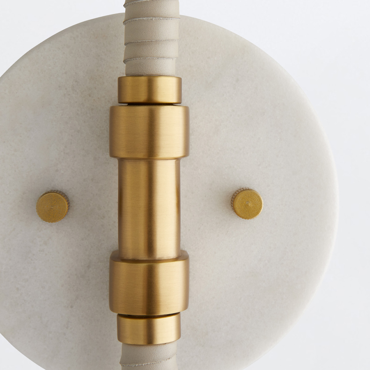 Бра Arteriors QNA-AARON-1WB-AHB из коллекции AARON. Основание выполнено в цветах - античная латунь, кремовая кожа, белый мрамор. Бра подходит для различных помещений - прихожей, гостиной, столовой, спальни, кабинета. Рекомендуем для интерьеров в стиле