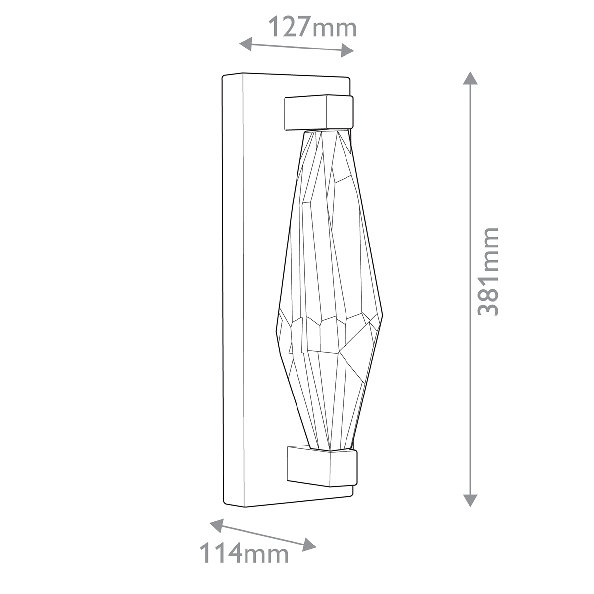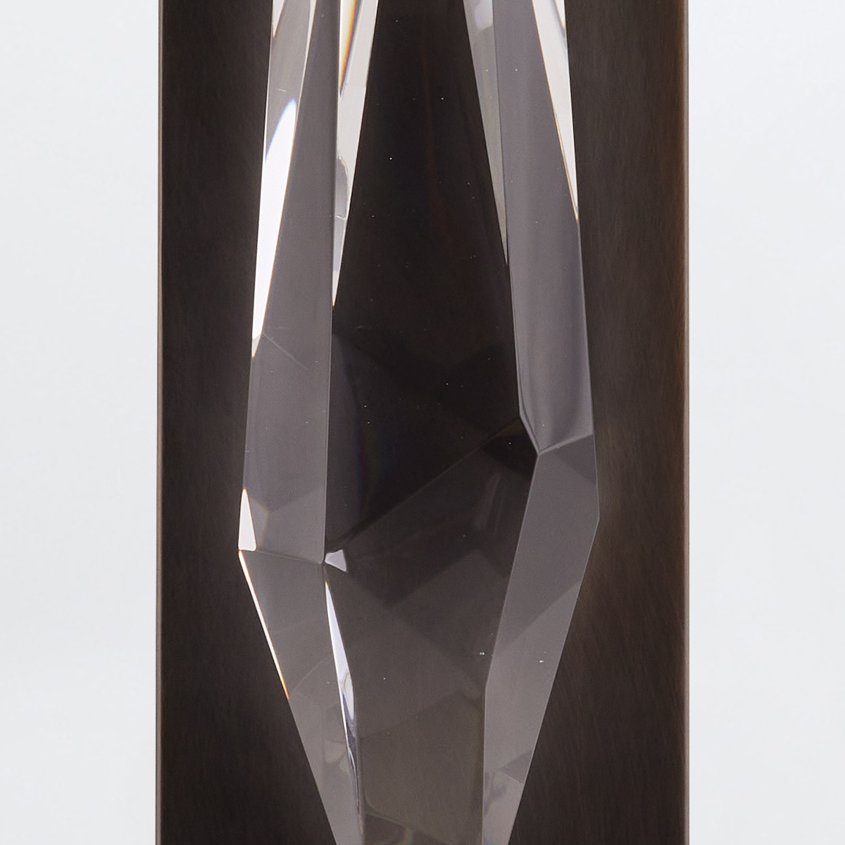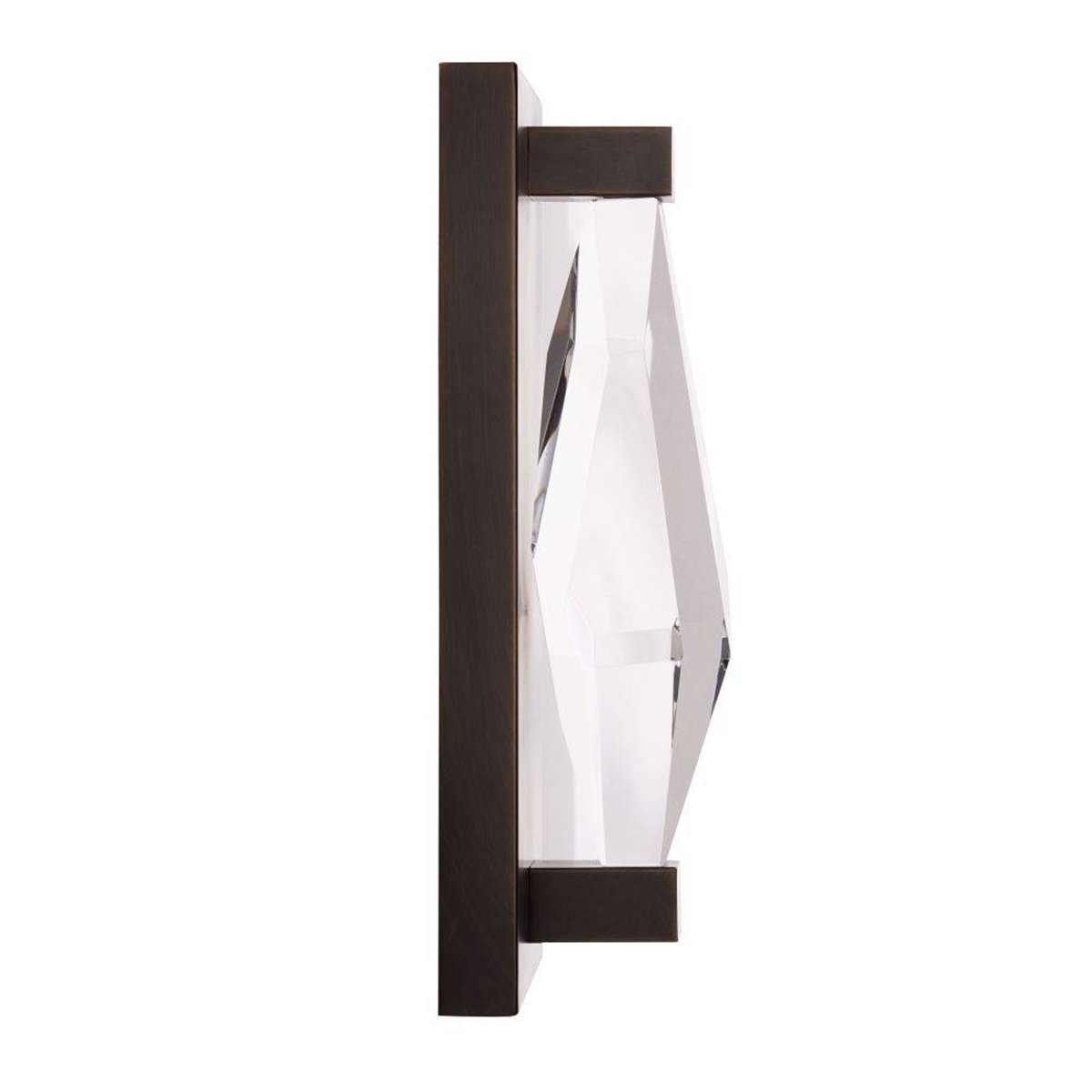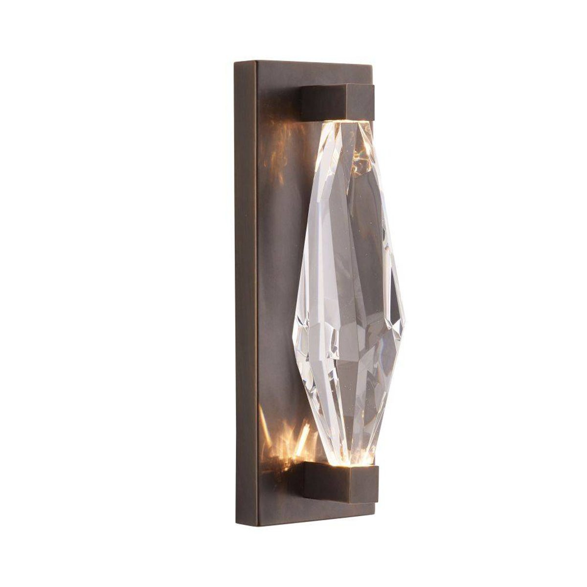Бра Arteriors QNA-MAISIE-1WB-EBR из коллекции MAISIE воплощает в себе органичный дизайн, вдохновленный натуральным граненым хрусталем. Угловатая конструкция бра выполнена из прозрачного матового хрусталя, окружённого рамой из английской бронзовой стали с кронштейнами, имитирующими гранёные формы. Подсветка подчёркивает текстуру отделки, создавая мягкий бронзовый отблеск на поверхности хрусталя, что придаёт изделию дополнительную глубину и элегантность.