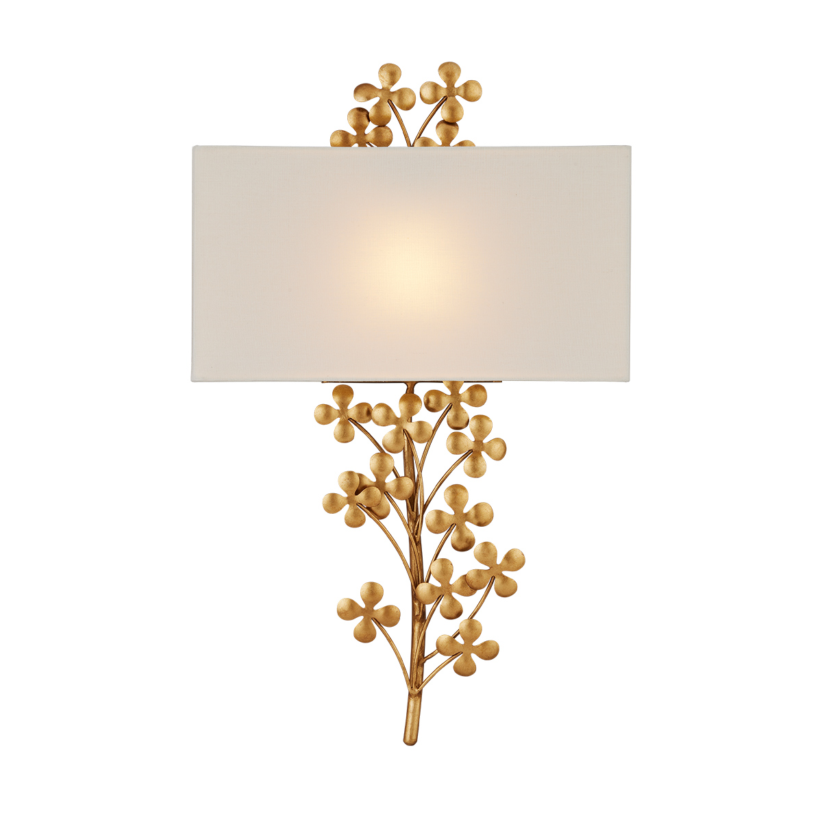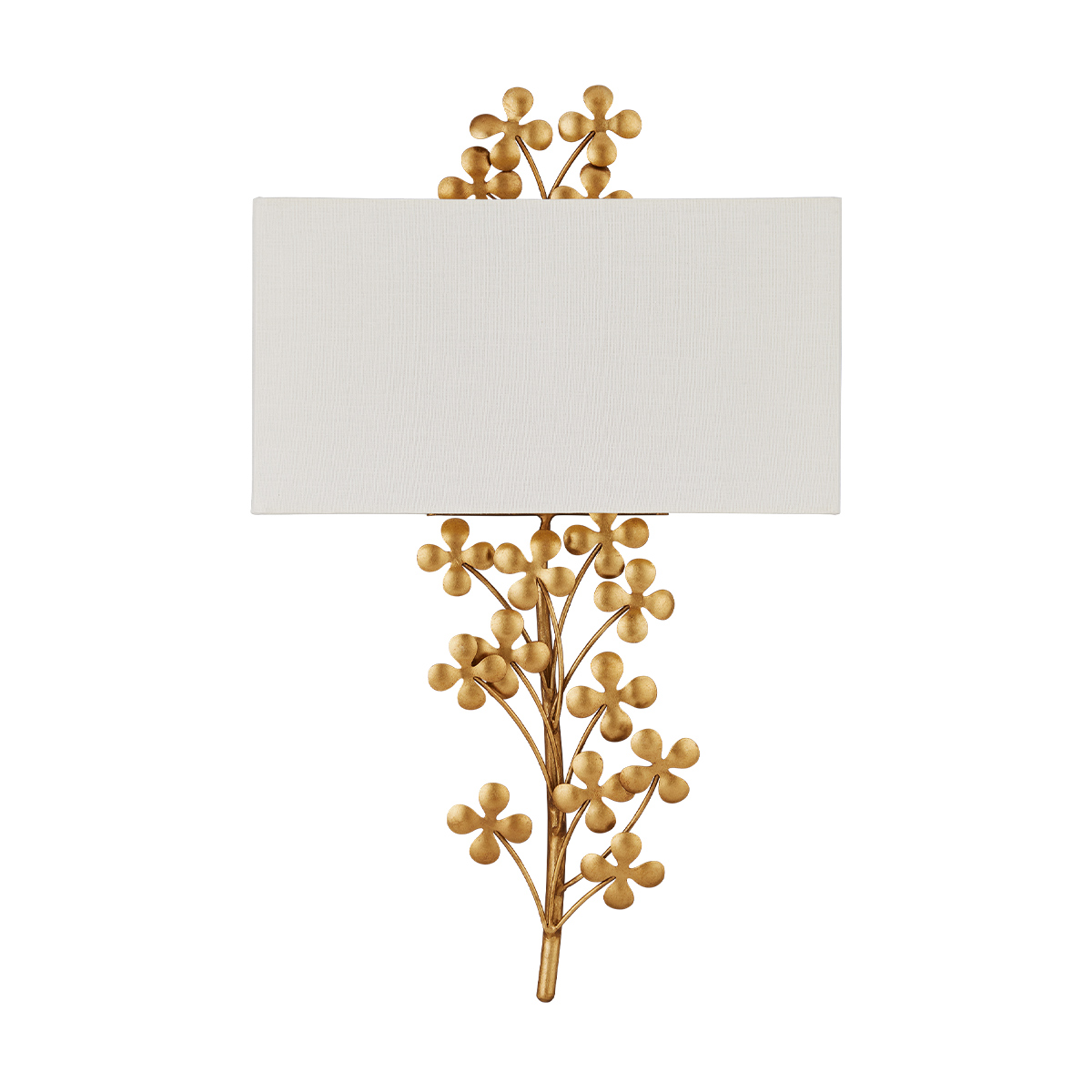 Бра Currey & Company QNC-CLOVERFIELD-2WB-CGL из коллекции CLOVERFIELD. Основание выполнено в цветах - современное сусальное золото, современное золото. Бра подходит для различных помещений - прихожей, гостиной, столовой, спальни, кабинета. Рекомендуем для интерьеров в стиле