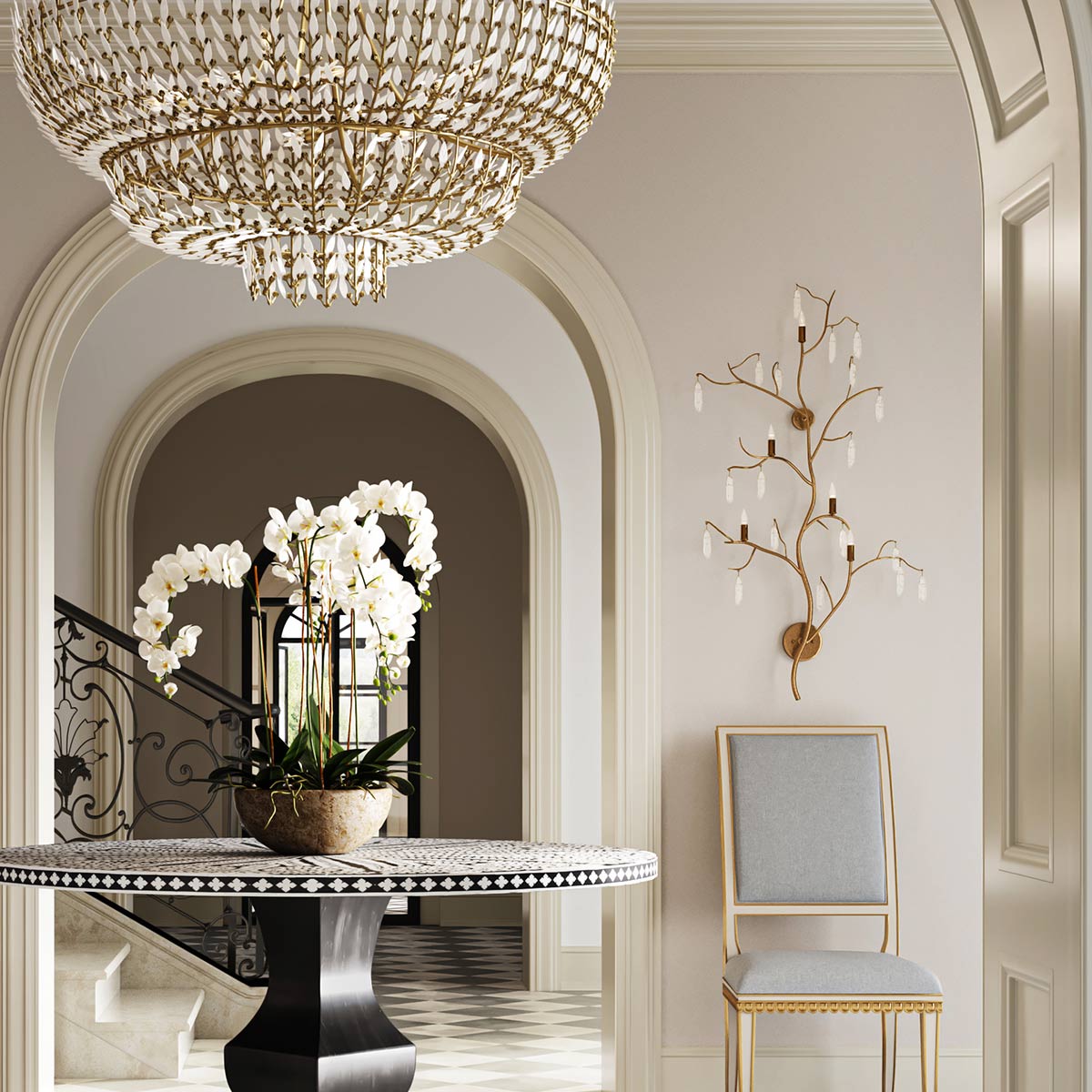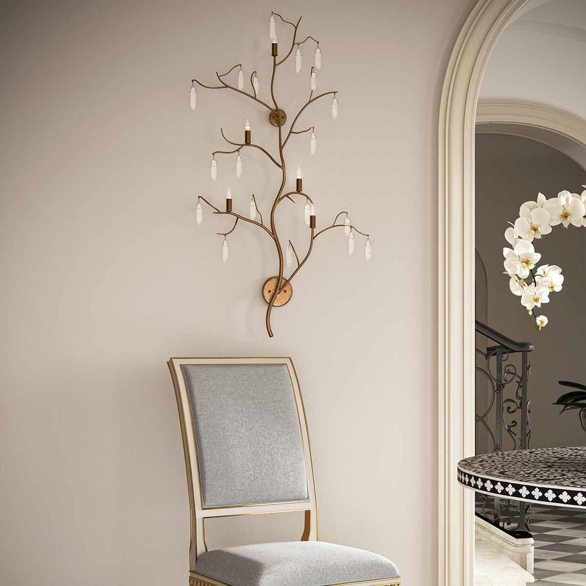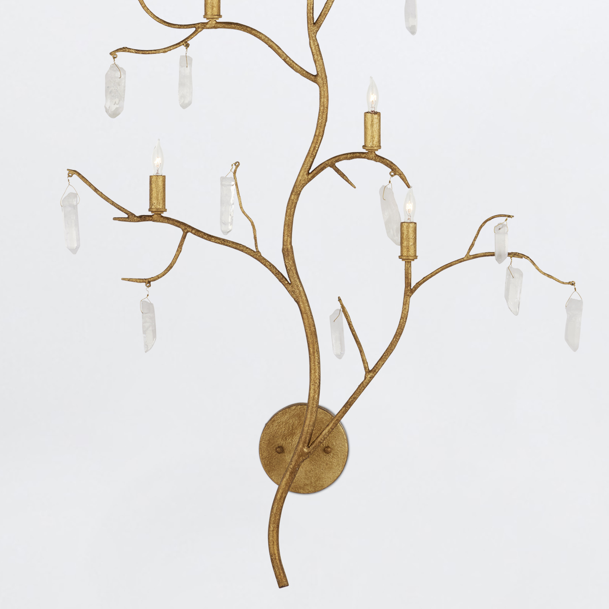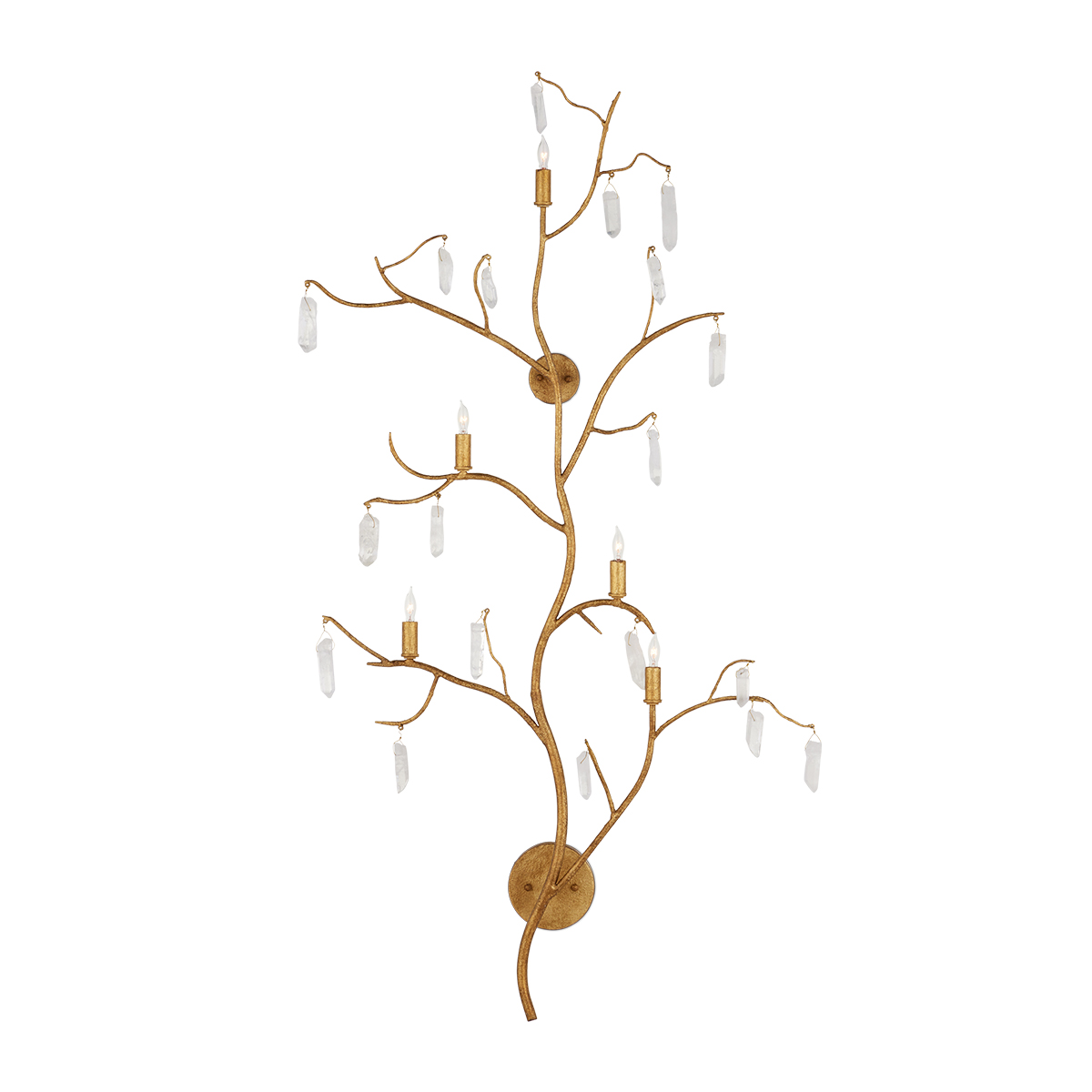 Бра Currey & Company QNC-FOREST-5WB-WLG из коллекции FOREST LIGHT. Бра подходит для различных помещений - прихожей, гостиной, столовой, спальни, кабинета. Настенное бра Forest Light — это исключительное произведение искусства, украшенное кристаллами кварца. Красивая отделка из люцернского золота идеально сочетается с кварцем на этом золотом настенном бра.