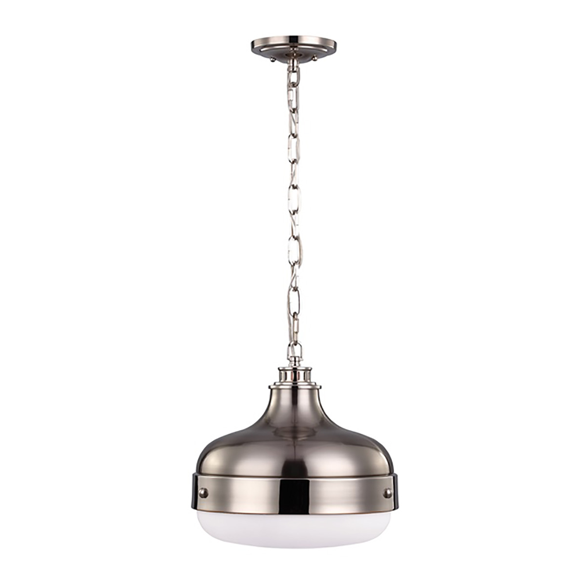 Подвесной светильник Elstead Lighting FE-CADENCE-2P-BS. Идеальный баланс между тягой к прошлому и устремленностью в будущее. Отсюда сочетание «индустриальной» формы, характерной для старинных светильников начала хх века, и футуристической отделки, лаконичности силуэта и эффектного матово-белого стекла. Основание выполнено в цветах - Никель, Сталь. Идеально подойдет для освещения гостинной, кабинета, кухни, прихожей, спальни, столовой. Цепь 1524 мм в комплекте