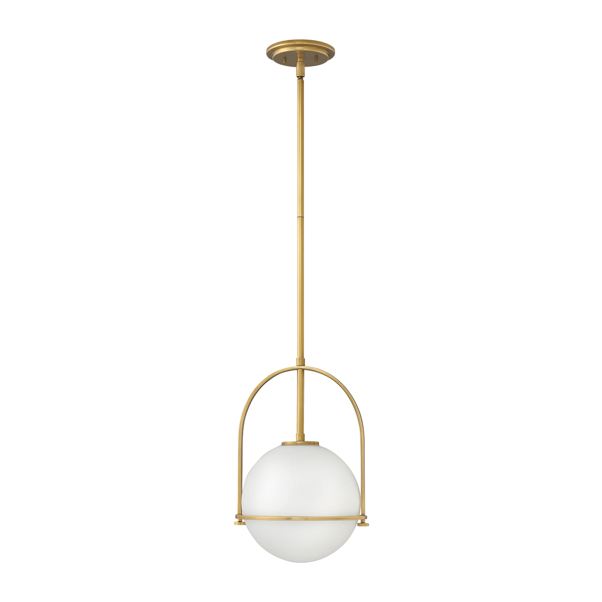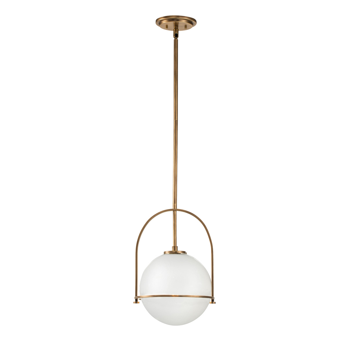 Подвесной светильник Elstead Lighting QN-SOMERSET-P-O-HB. Пример сдержанной и утончённой изысканности. Искусное сочетание современности и винтажного очарования. Плафон из матово-белого стекла непринуждённо парит в раме обтекаемой формы. Основание в отделке - Латунь. Можно использовать при освещении гостинной, кабинета, кухни, прихожей, спальни, столовой. Поставляется в комплекте со стержнями 2х305 мм и 1х152 мм