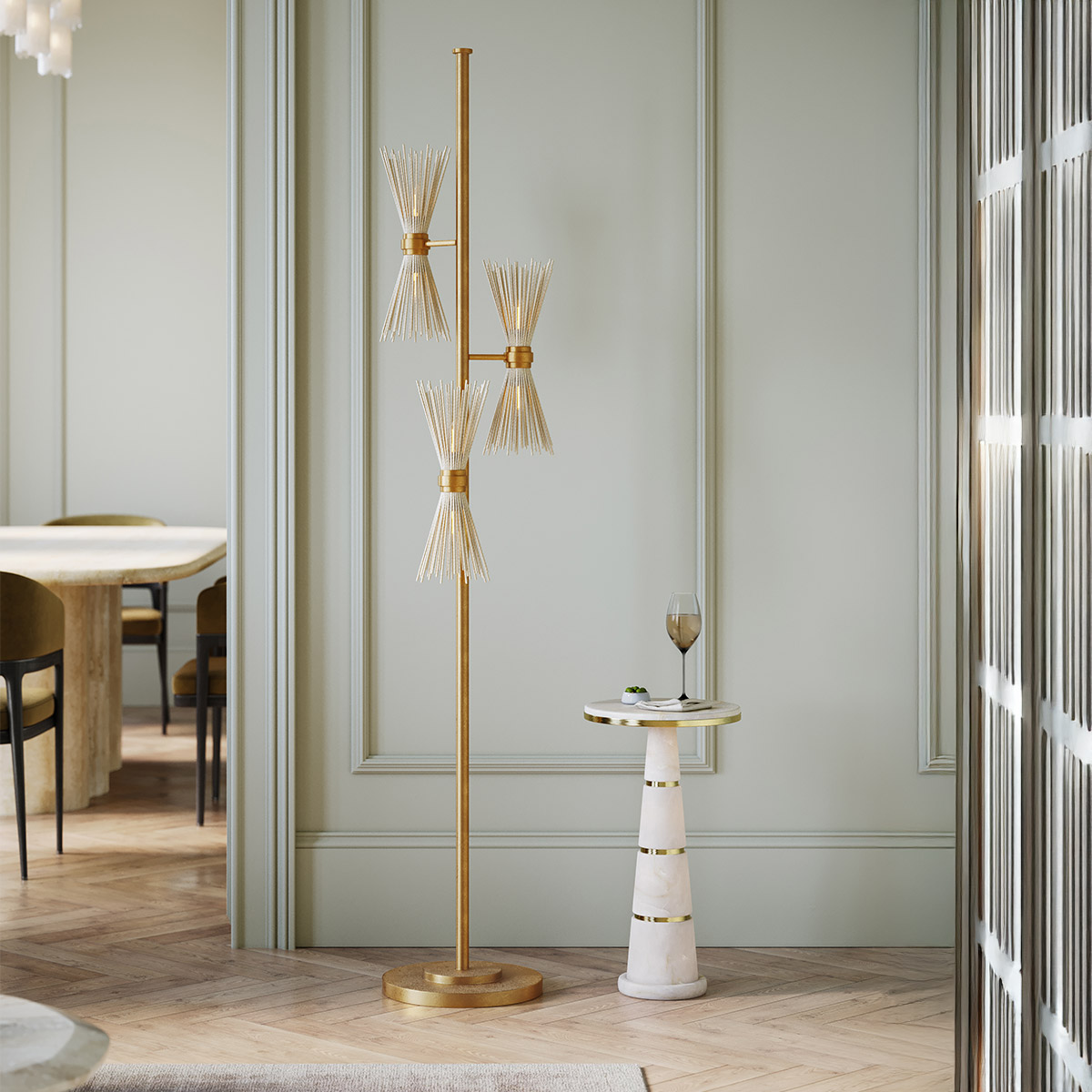 Торшер Currey & Company QNC-NOVATUDE-FL из коллекции NOVATUDE. Основание выполнено в цветах - античное сусальное золото, современное сусальное серебро. Торшер подходит для различных помещений - гостиной, прихожей, кабинета. Рекомендуем для дизайна в стиле