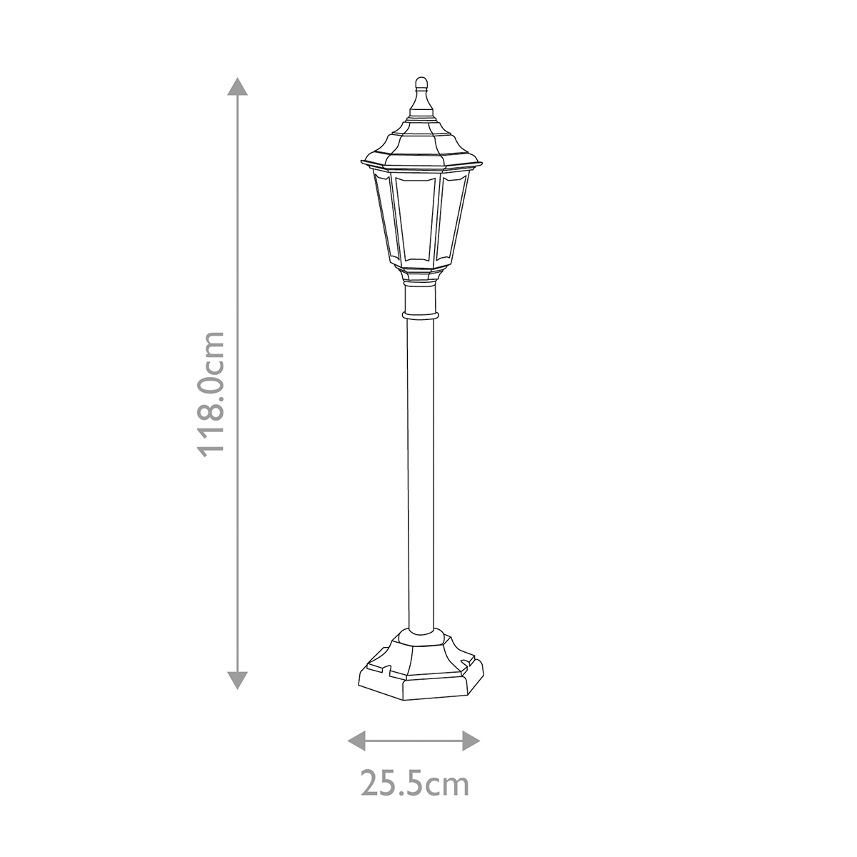 Фонарный столб Elstead Lighting KINSALE-PILLAR. Конструкция шестигранного светильника, обеспечивает высокую степень защиты от механических воздействий и ультрафиолетового излучения. Продукт изготовлен в соответствии с требованием ip44. Качество подтверждает 20 летняя гарантия против коррозии, воздействия ультрафиолетового излучения и пыли. Основание выполнено в отделке - Черный. Идеально подойдет для уличного освещения.