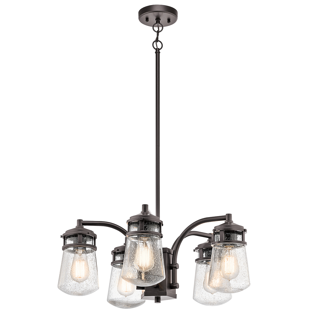 Подвесной фонарь Elstead Lighting KL-LYNDON-5P-AZ. Соединение прекрасной архитектурной бронзы и прозрачного (с пузырьками воздуха) стекла, легко сочетаются с любым, уже существующим в вашем доме декором. В светильнике сочетается простой дизайн плавных линий с акцентом на традиционные детали. Основание в отделке - Архитектурная бронза. Можно использовать при уличном освещении, степень защиты IP44. Поставляется со стержнями 2х152 мм и 2х305 мм
