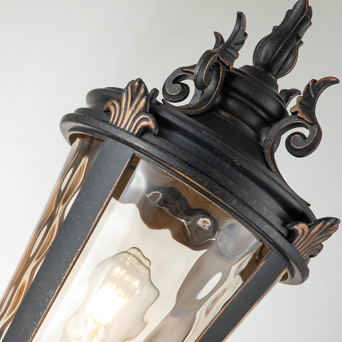 Фонарный столб Elstead Lighting BT4-M из коллекции Baltimore. Светильник стилизованный под старину, с декором в виде листьев. Плафон выдувается из янтарного тонированного цельного стекла. Основание выполнено в отделке - Выветренная бронза. Подходит для уличного освещения, степень защиты IP44.