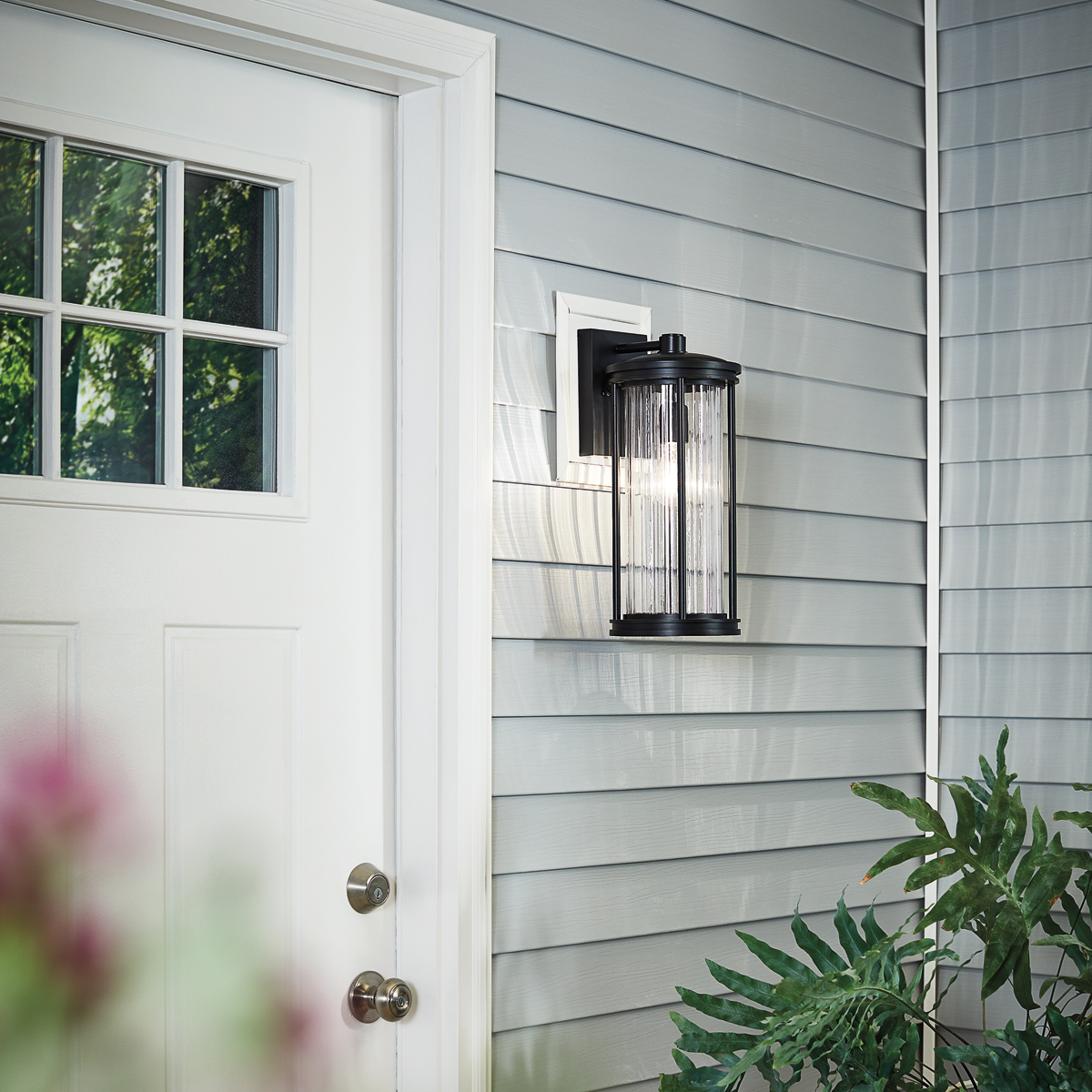 Настенный фонарь Kichler KL-BARRAS2-M-BK из коллекции BARRAS. Основание выполнено в отделке - Черный. Можно использовать при уличном освещении. Степень защиты IP44.
