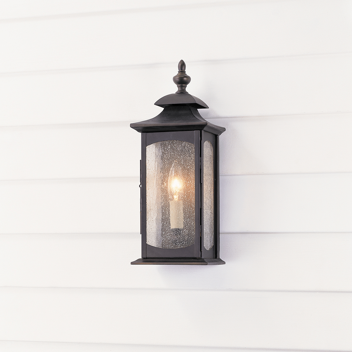 Настенный фонарь Elstead Lighting QN-MARKET-SQUARE-S. Ностальгический традиционный дизайн. Прозрачное фактурное стекло. Основание выполнено в отделке - Масляная потертая бронза. Идеально подойдет для уличного освещения, степень защиты IP44.