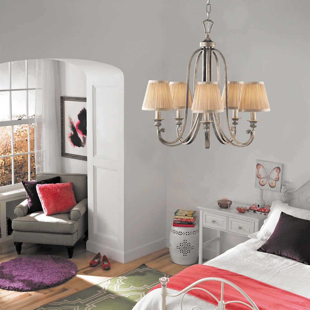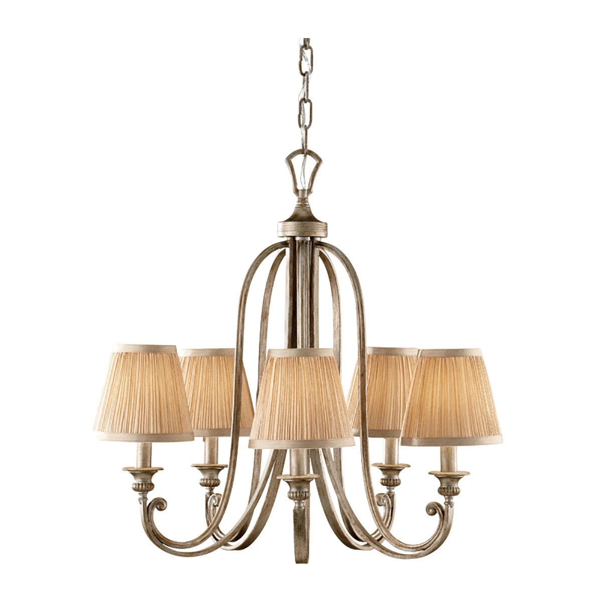 Люстра Elstead Lighting FE-ABBEY5. Украшен плиссированными абажурами и представлен в мягкой отделке «сусальное золото», которая наносится на корпус вручную. Светильник создан под влиянием архитектуры монастырей, и выполнен в классическом современном стиле, который подходят под разные варианты установки. Ллюстру можно повесить как потолочную. Основание выполнено в цвете - Сусальное золото. Можно использовать при освещении гостинной, кухни, спальни, столовой. Цепь 1525 мм в комплекте