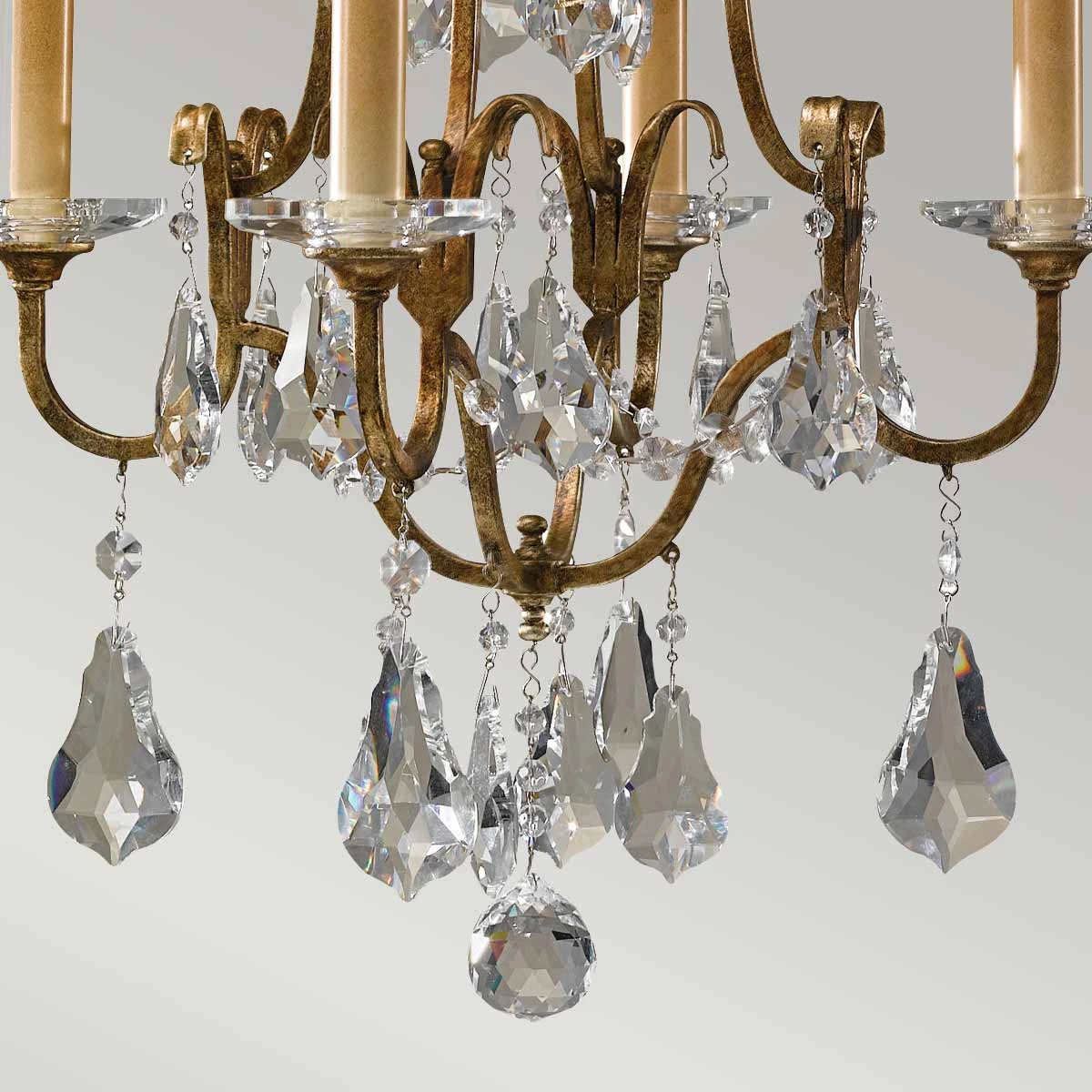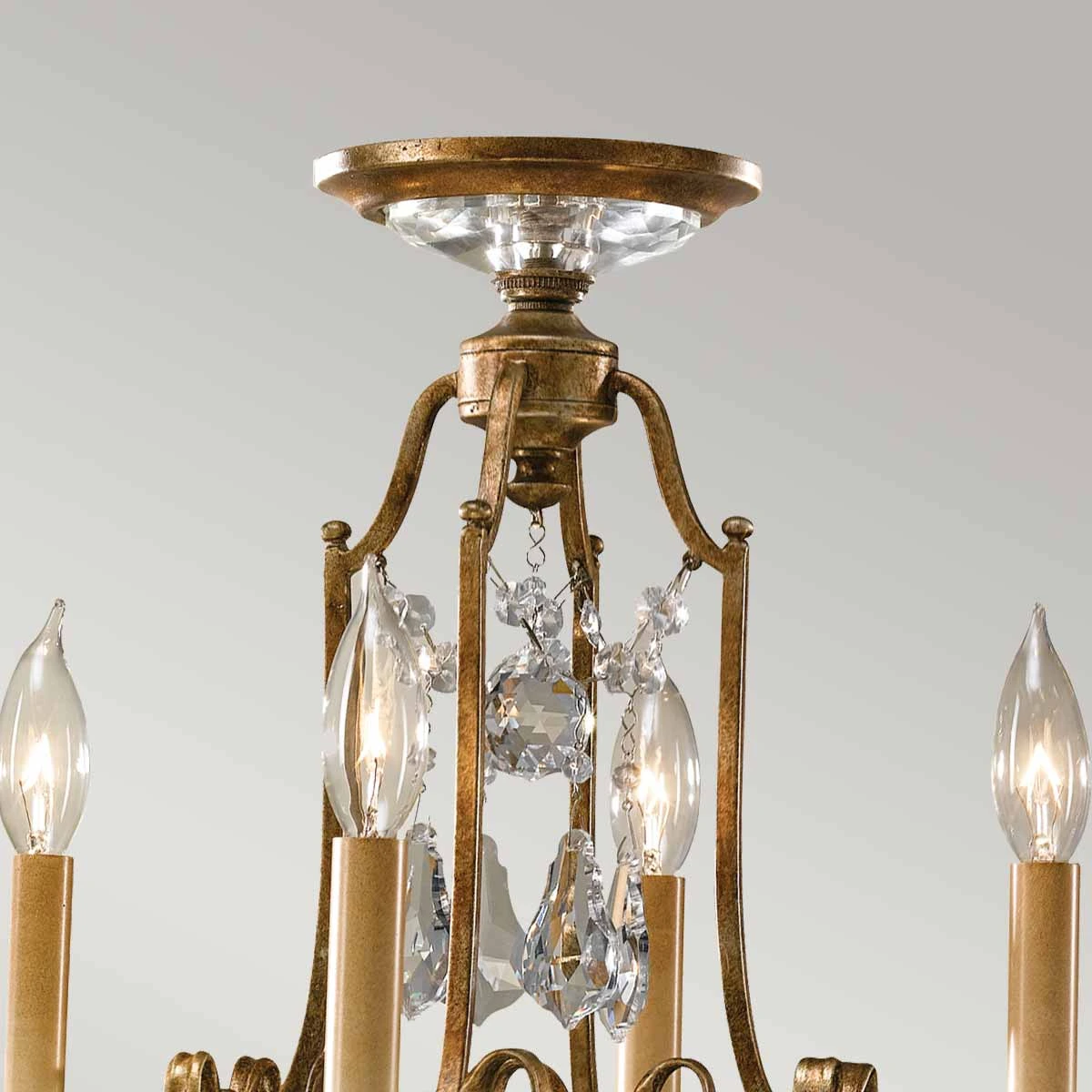 Люстра Elstead Lighting FE-VALENTINA4. Каждая, стилизованная под свечу, лампочка установлена в свой отдельный хрустальный подсвечник. Светильник создан под влиянием классики рубежа веков. Гибкая рамка отделана под оксидную бронзу, а кристаллы из полированного стекла украшают каждую деталь, добавляя еще больше элегантности. Идеально подойдет для освещения гостинной, кухни, спальни, столовой. Поставляется с цепью длиной 1524 мм