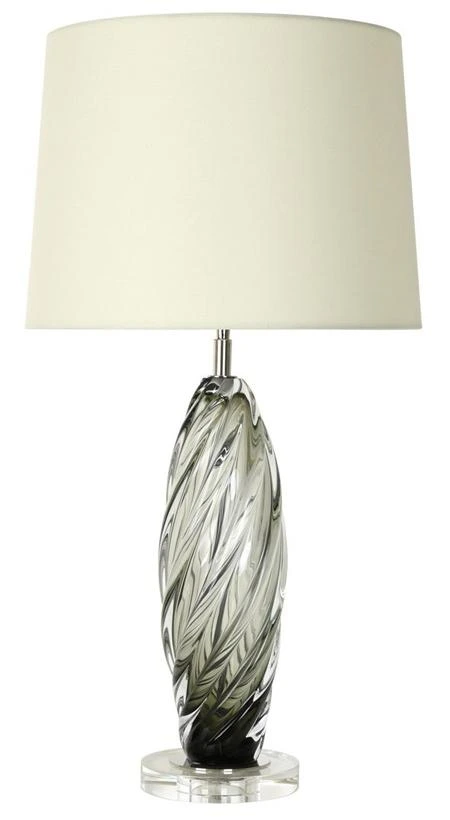 Настольная лампа Cecil имеет светло-серые тона, проходящие через рифлёное стекло. Светильник, основание которого из прозрачного стекла, дополнен абажуром белого цвета, который придает элегантный стиль.