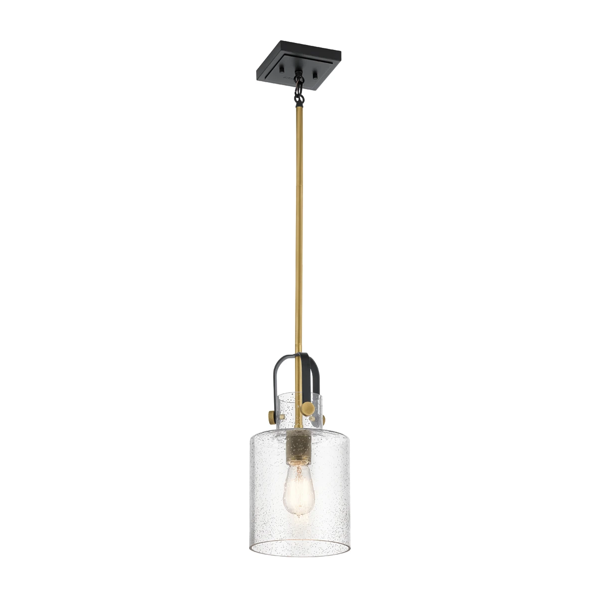 Подвесной светильник Elstead Lighting QN-KITNER-P-NBR. Идеальный светильник для интерьеров, в которые нужно добавить акцент в индустриальном стиле. Двухцветная отделка и детали эффектно подчеркивают контраст с плафоном из прозрачного стекла. Рекомендуем сочетать с лампами в индустриальном стиле. Основание выполнено в цвете - Латунь. Подходит для освещения гостинной, кабинета, кухни, прихожей, спальни, столовой. Поставляется в комплекте со стержнями 2х305 мм и 2х152 мм
