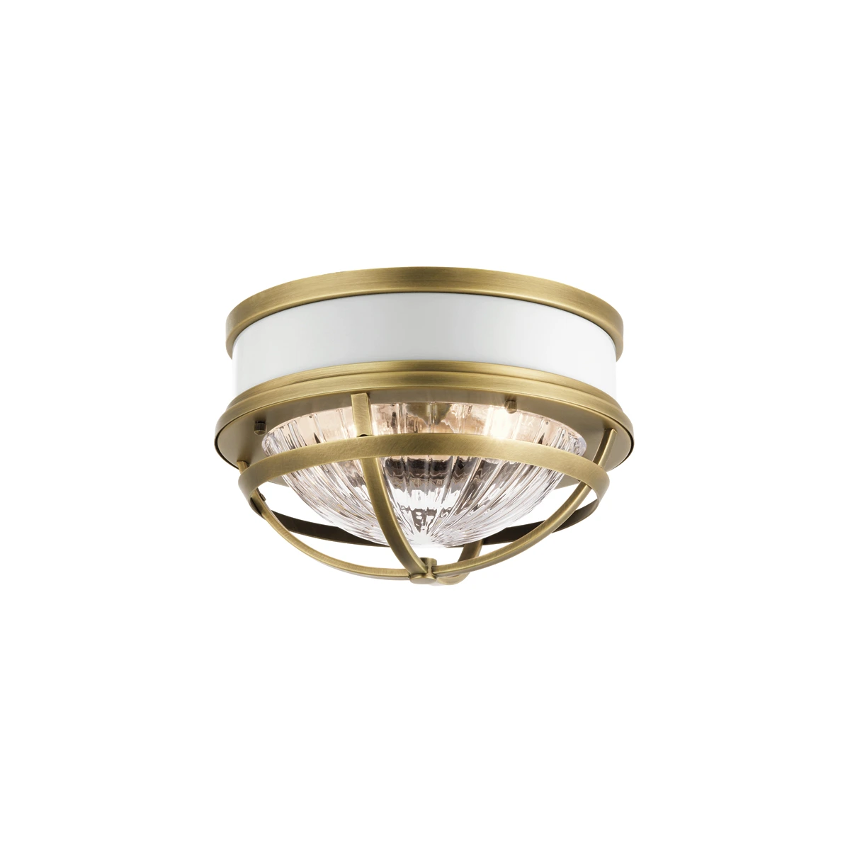 Потолочный светильник Elstead Lighting QN-TOLLIS-F-NBR. Необычный и стильный светильник с белым глянцевым основанием и плафоном из прозрачного рифленого стекла. Лучший выбор для создания расслабляющей атмосферы. Можно использовать при освещении гостинной, кабинета, кухни, прихожей, спальни, столовой, детской.