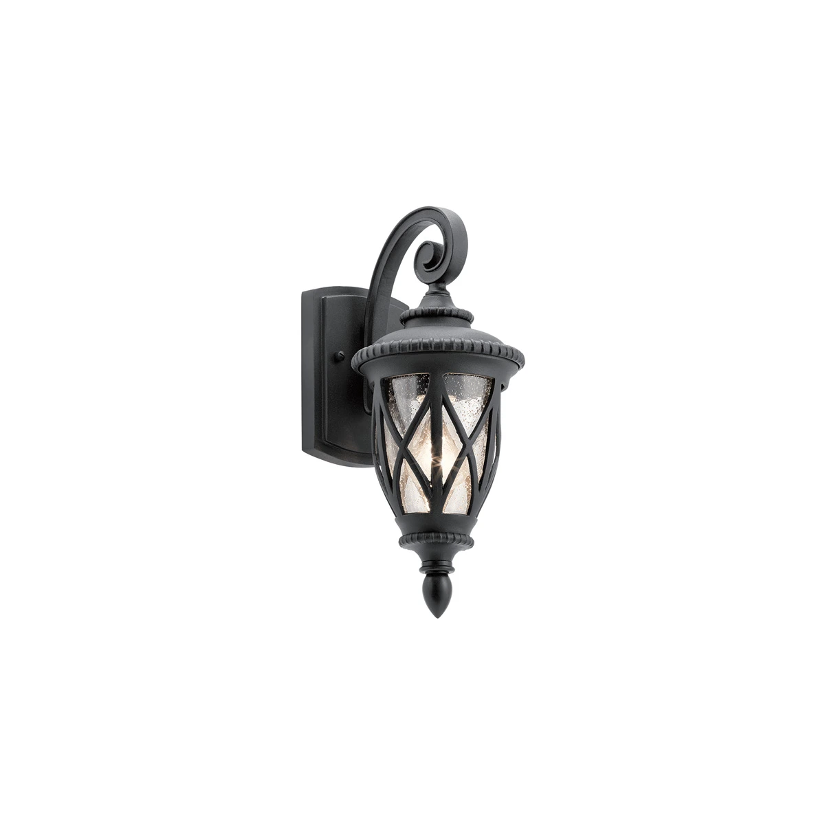 Настенный фонарь Elstead Lighting KL-ADMIRALS-COVE-S. Вдохновлённ классическим стилем тюдоров, светильник сочетает строгость деталей с современным подходом к исполнению. Светильник из композитного материала легко выдерживает агрессивные внешние воздействия, например, брызги морской воды и ультрафиолетовые лучи, сохраняя долговечность отделки. Прозрачное фактурное стекло усиливает винтажный акцент. Основание в отделке - Черный. Идеально подойдет для уличного освещения, степень защиты IP44.