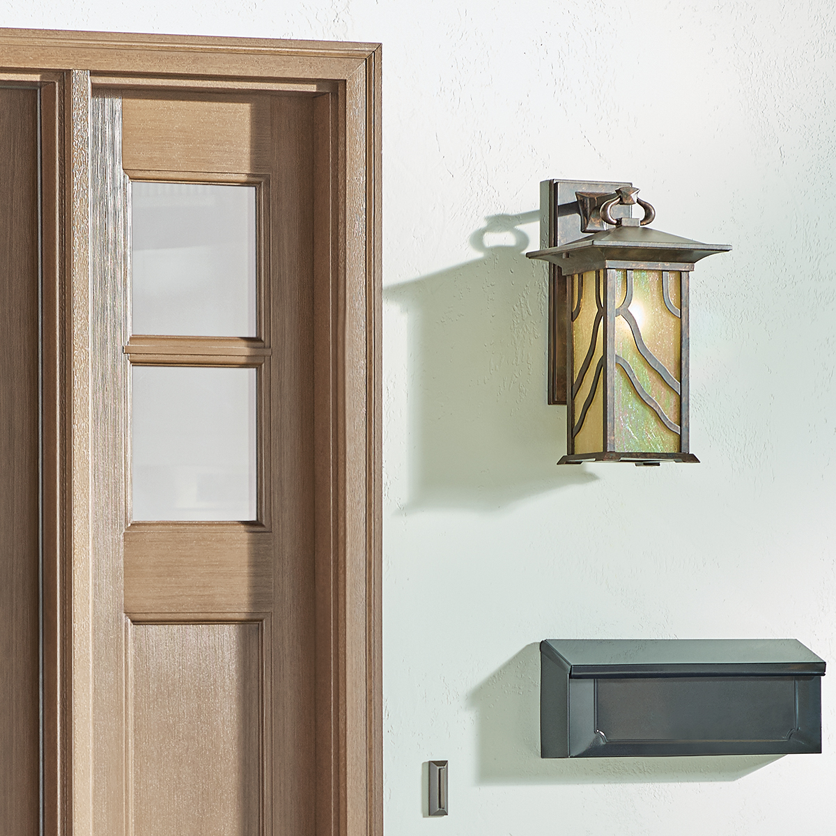 Настенный фонарь Elstead Lighting QN-MORRIS-L. Миссионерский стиль, распространённый на юго-западе америки колониальной эпохи. Искусственно состаренное медное покрытие. Фактурное матовое стекло. Алюминиевая конструкция. Подходит для уличного освещения, степень защиты IP44.